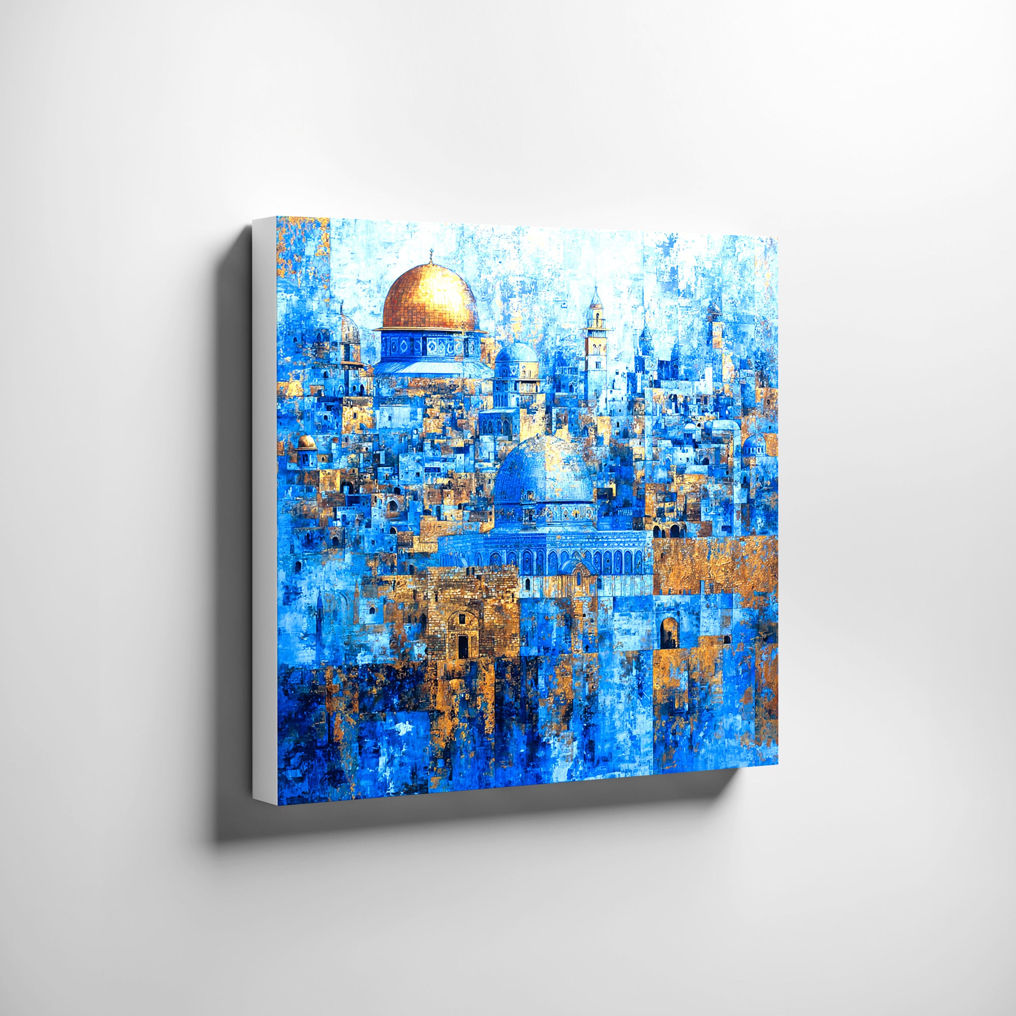 Inspired by the sacred skyline of Al-Aqsa (Jerusalem), the artwork reimagines iconic architectural forms through a contemporary, painterly lens. Rather than depicting a specific site, the composition captures the essence of a holy city shaped by history, devotion, and enduring spiritual presence.